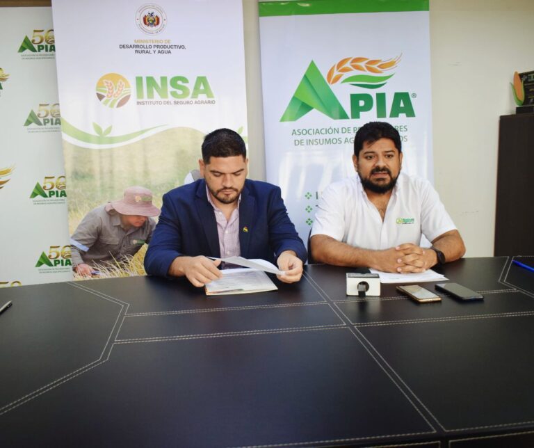 La Asociación de Proveedores de Insumos Agropecuarios (APIA) y el Instituto del Seguro Agrario (INSA), institución pública autárquica, bajo tuición del Ministerio de Desarrollo Productivo, Rural y Agua, suscribieron un Convenio Interinstitucional orientado a fortalecer la capacitación en buenas prácticas agrícolas, el intercambio de información técnica y el desarrollo de acciones conjuntas para reducir la vulnerabilidad de los productores agropecuarios frente a eventos climáticos adversos.